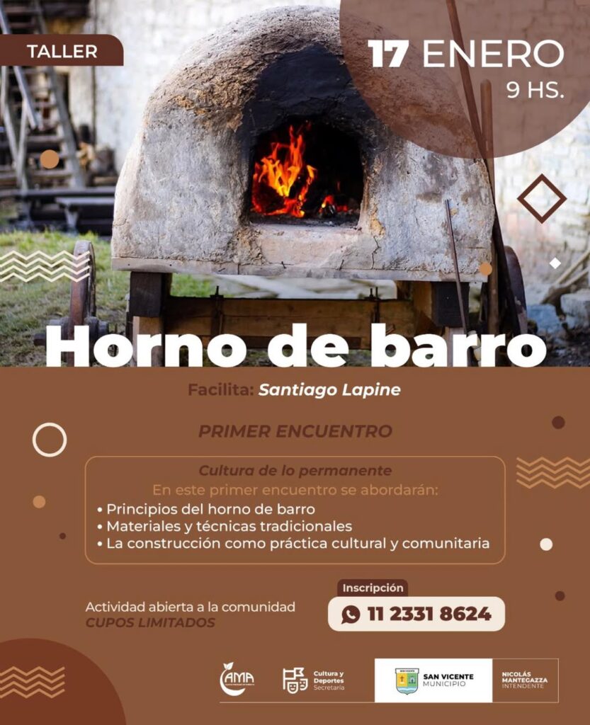 En un mundo cada vez más acelerado y tecnológico, surge la necesidad de volver a las raíces, al contacto directo con la tierra y a los procesos naturales. Bajo esta premisa, la Agencia Municipal del Ambiente y el Municipio de San Vicente, te invitan a participar del primer encuentro del Taller de Horno de Barro, una experiencia única para reconectar con la cultura de lo permanente y los saberes que han alimentado a generaciones.