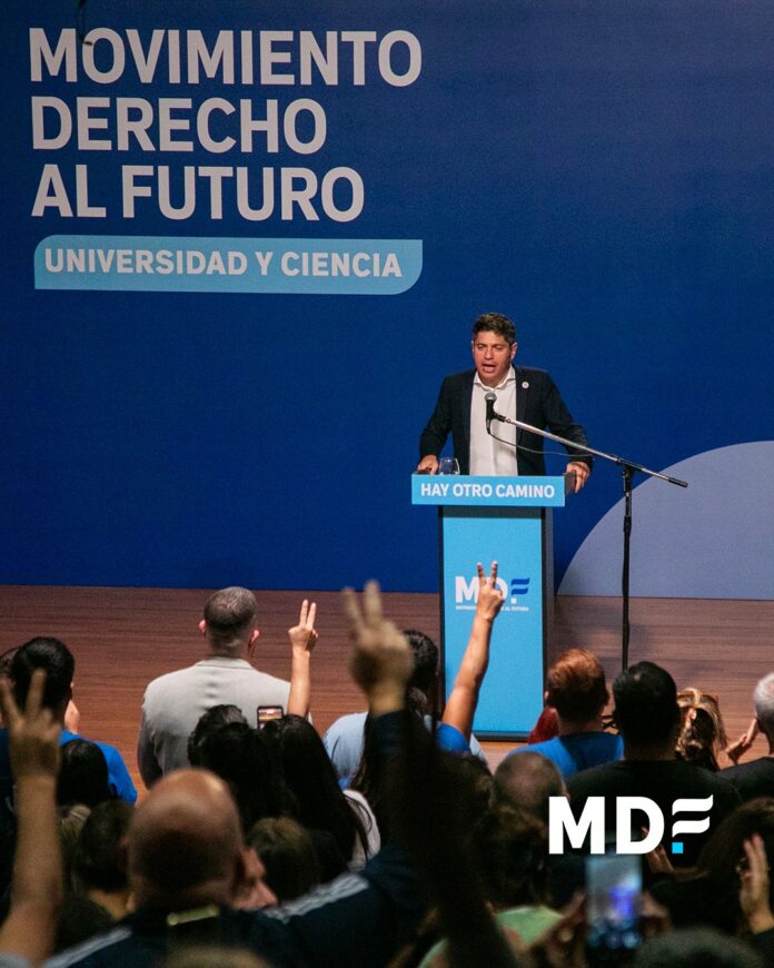 Axel Kicillof presentó este jueves el espacio Movimiento Derecho al Futuro (MDF) Universidad y Ciencia en el Aula Magna del Pabellón 2 de la Facultad de Ciencias Exactas de la UBA. Ante un auditorio colmado por científicos, docentes y estudiantes, el mandatario calificó el momento actual como «espantoso» para el sistema académico y la producción nacional, y consideró que “no le puede pasar más a la Argentina que su sistema universitario resulte estar ajeno o distante de la experiencia de gobierno”.